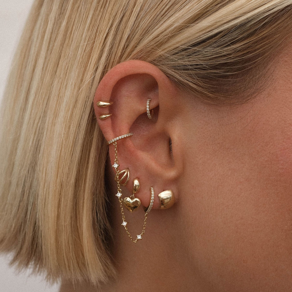 Refine your style. Ed's clicker style showcases a seamless hoop earring with front facing stone arrangement in your choice of meticulously set lab diamonds or crystals. Now pull your hair up high and create a dazzling display in these cute clickers. Created for you in 14 karat solid gold, this single clicker piercing can stay in your ear always, even when you are in the water.