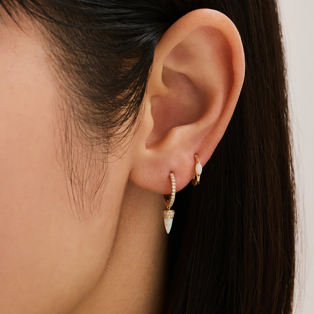 Marquise opal accentuates the boho lines of this fun huggie.