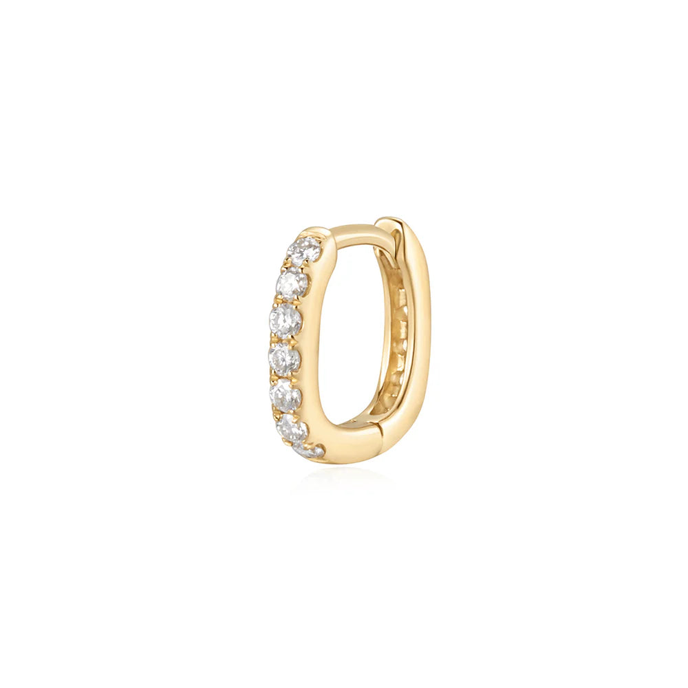 The new oval paperclip hoop earring features diamonds on both sides, offering a perfect blend of modern design and timeless elegance. No matter where in your ear you place this, the diamonds will sparkle from all angles!